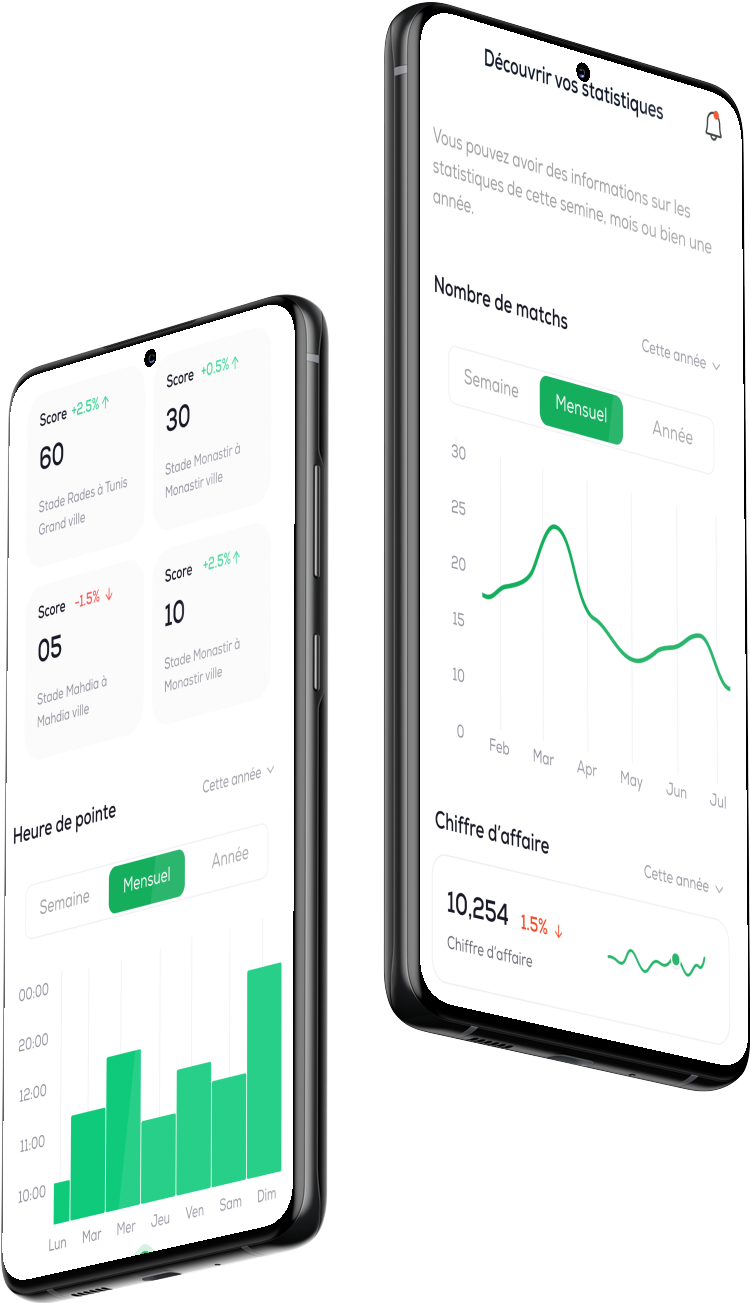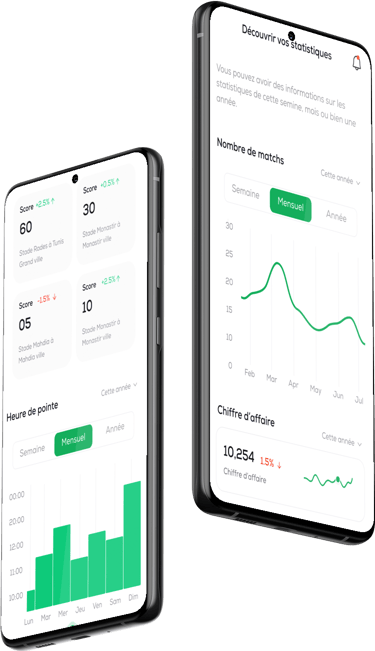 Vous pouvez suivre et comparer l'évolution jour après jour, mois après mois, et année après année. Vous pouvez comparer vos terrains et connaître les moments où les joueurs viennent jouer 🏆 (heures de pointe).