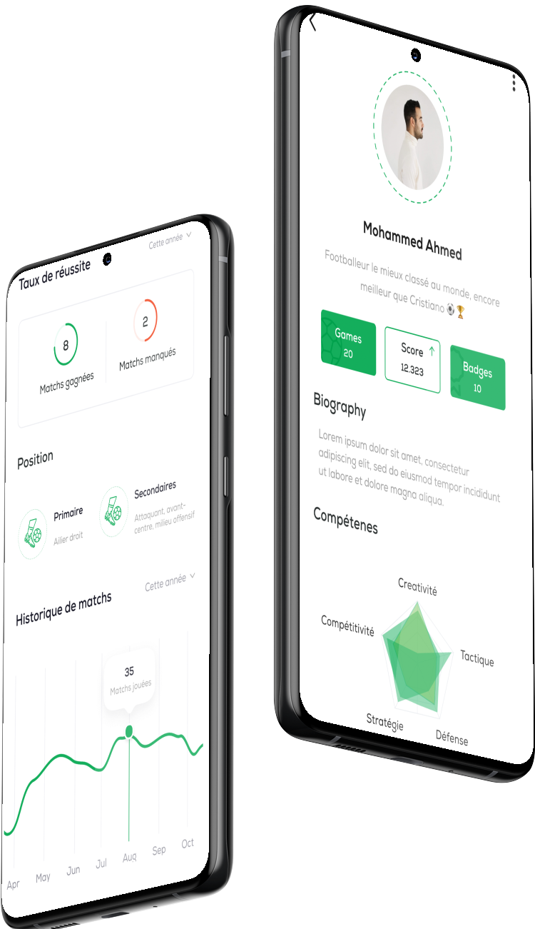 Chaque joueur a un profil où se trouvent des statistiques sur ses performances et son historique de match.